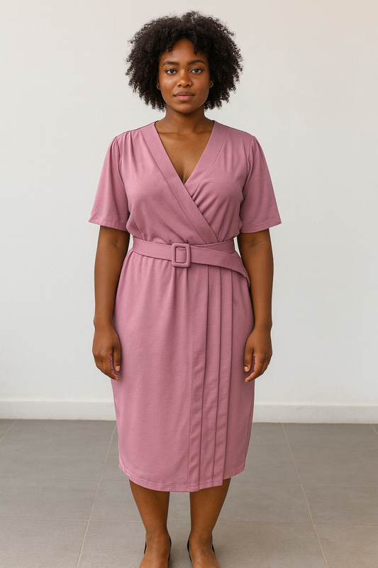 Ember Serene Wrap Midi Dress – Dusty Rose Edition