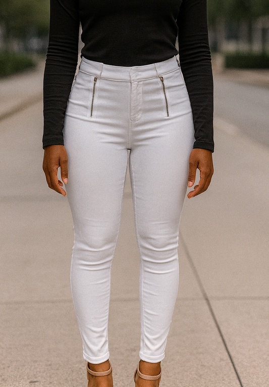 Ember Sleek High-Waist Zipper Pants – Arctic White Edition